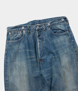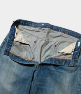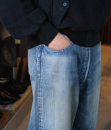 【素材】生地は 50's 後半から 60's 前半頃の 501XX の糸使いを再現してしっかりと打ち込んだ、13oz の赤耳付きセルヴィッジインディゴデニムを使用。縦 落ちの表情がとても良く、ヴィンテージ感のある生地。