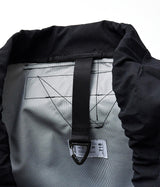 シェルには天然素材のような質感を持つタスランナイロンオックスを採用し、特殊ポリウレタンフィルムを挟んだ3層構造により、高い防水性・耐水性・防風性を実現。