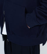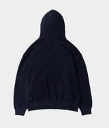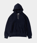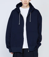 太番手の糸を度目を詰めて編み上げた厚みのある生地が特徴のジップアップフーディー。