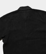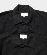 尾州地方の歴史のある機屋にて、旧式の織機を使用して製織したオリジナル素材。太番手のヘンプ糸を経緯共に限界の超高密度で織り上げた平織物。製織後、ニドム加工を行い、あえて生地を大きく収縮させ、生地表面に凸凹を出しました。また、加工中に生地表面が擦れる事で、表面の毛羽が柔らかくなり、まるで起毛したかのようなしっとりとした手触りとなっています。高密度に織り上げた時点では、帆布のごとく硬い生地ですが、ニドム加工を経る事によって、まるで長年寄り添って来た古布かの様な風合いを作っています。