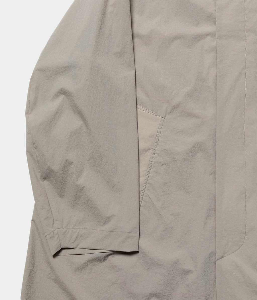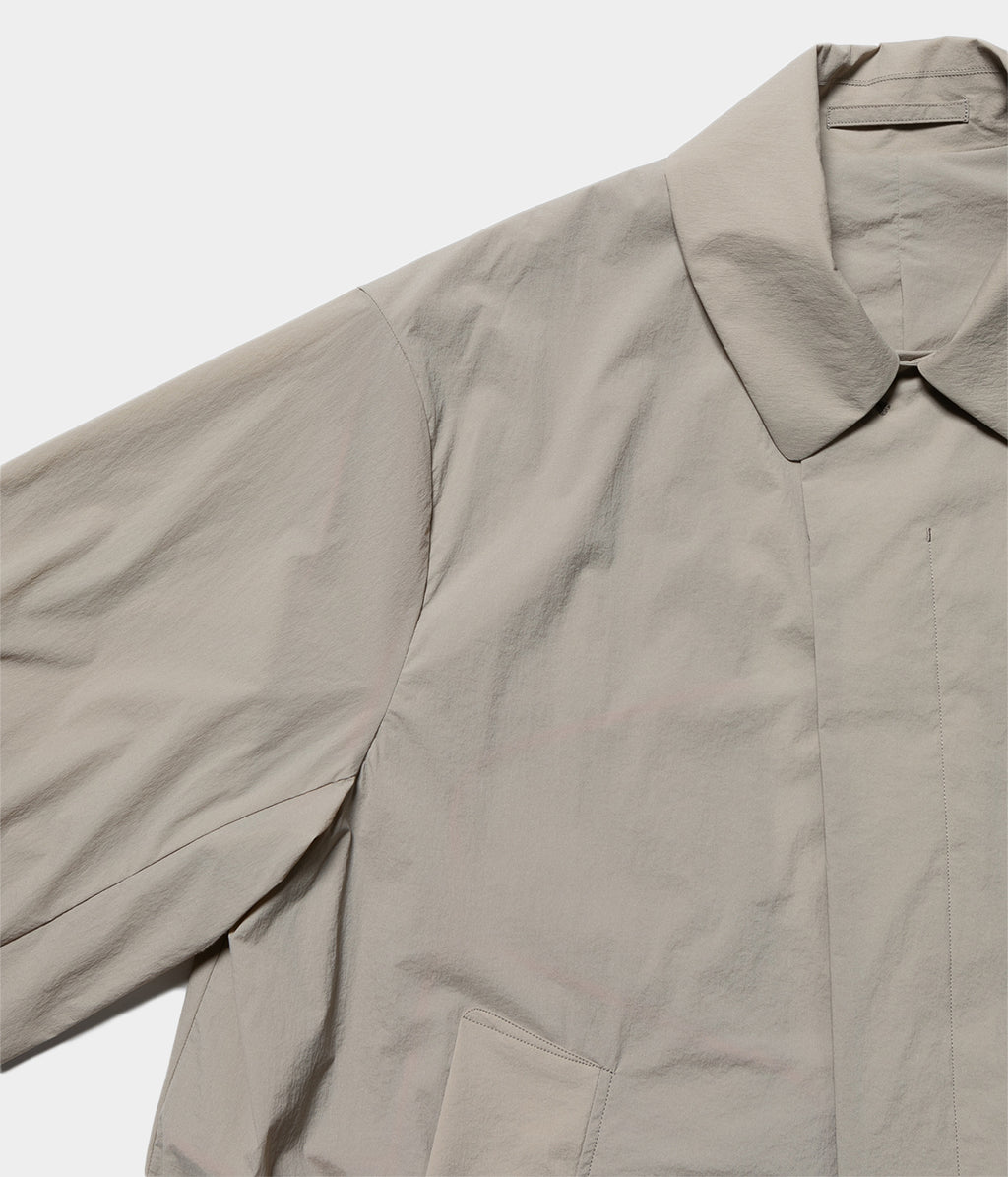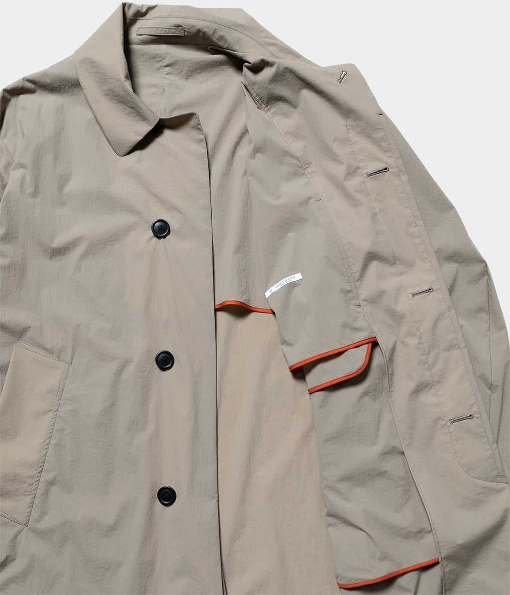 ナイロンとポリウレタンを使用した軽量素材のラフに羽織れるスプリングコートです。