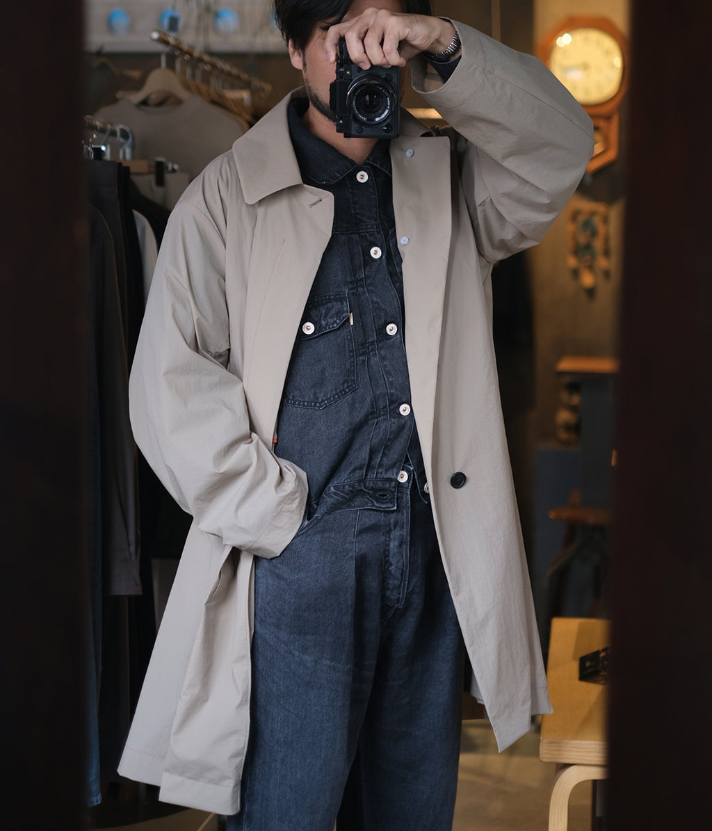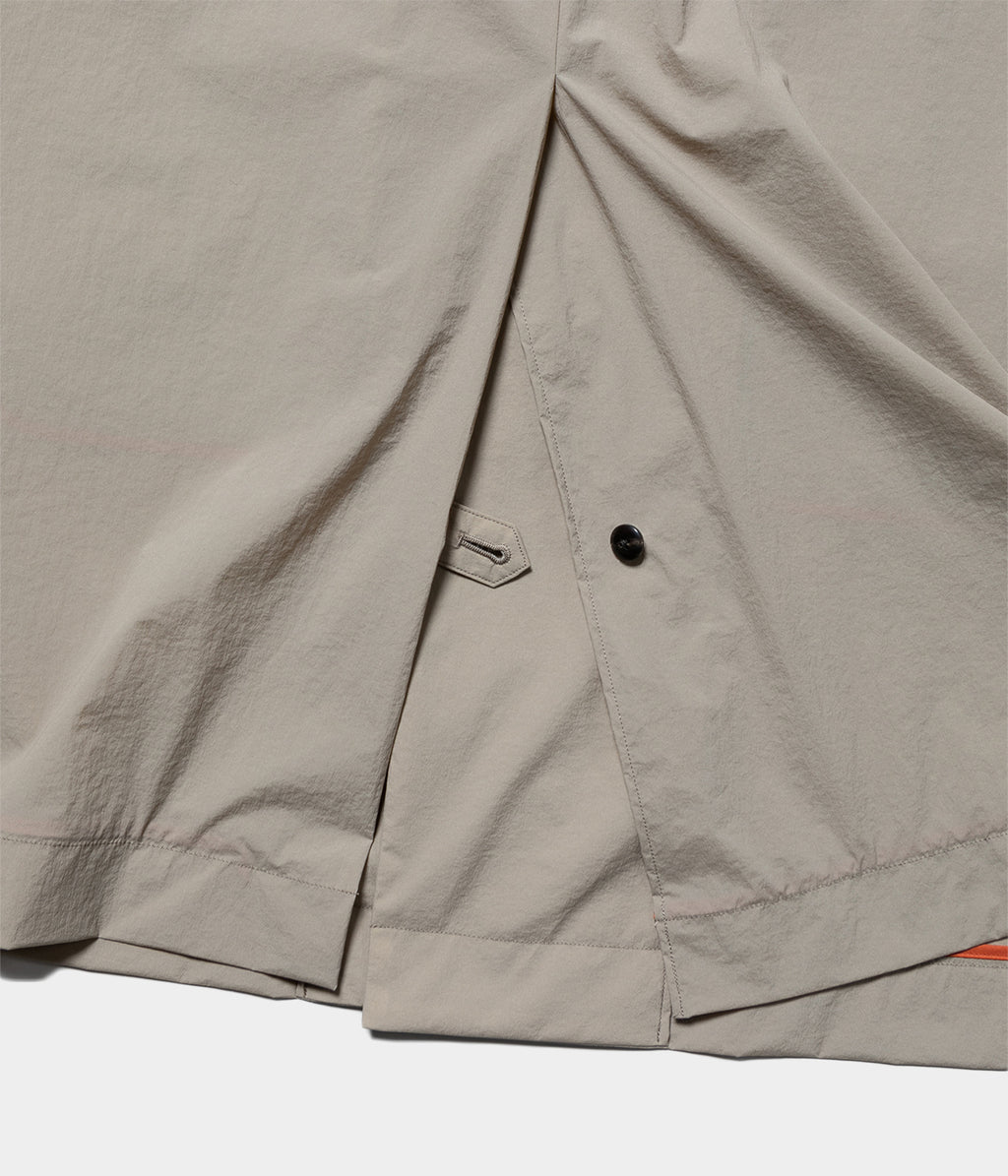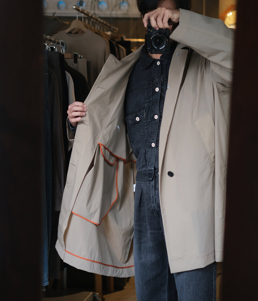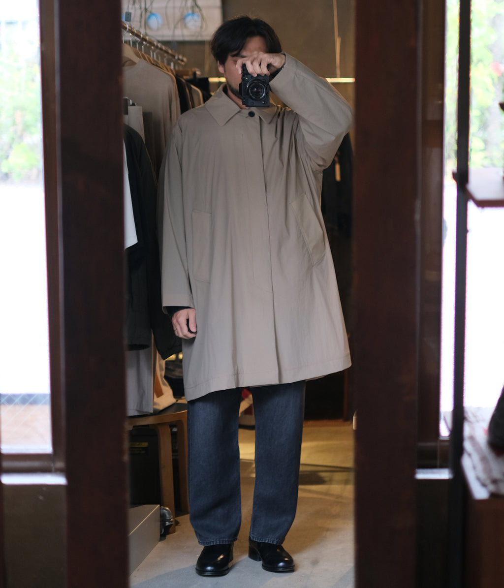 ナイロンとポリウレタンを使用した軽量素材のラフに羽織れるスプリングコートです。