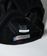 つばの長さ約 7.2cm。生地は撥水性、耐久性、速乾性、耐摩耗性、抗UVの機能を兼ね備えたフランスSOFILETA社の ストレッチ生地を使用しています。裏地はクールマックスメッシュを使用しています。 後ろアジャスター部分は、プラスチックのバックルでナイロンテープを絞るタイプです。