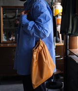 内側は仕切りがなくざっくりと荷物を入れることができ、ドローコードは長めに設定されているので手首に巻いたり肩掛けでもお使いいただけます。