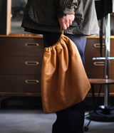 クローム染料仕上げのオイルソフトの牛革を使用した巾着袋です。