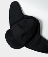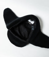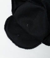 ハリとコシがあり、毛羽立ちの少ないドライタッチなヴァージンウールを使用した耳付きキャップ。 つば部分はプラスチックボタンにより上げ下げ可能。耳部分は磁石が内蔵してあり、上で留めることが出来ます。 耳内側ボア部分はパイル密度が高く、保温性に優れています。