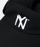 “NY NY”ロゴの刺繍c/#白がフロント部分に入り、サイドに”COMES”の刺繍c/#白が入ります。 後ろアジャスターは牛革のベルト、別注塗装したシックブラックのバックルを使用しています。 つばの長さ約7.8cm。クリアーツイル生地。