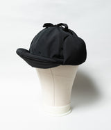 60/40クロス撥水生地を使用し、つばには中綿を入れて膨らみを持たせた耳付きキャップ。 つばの長さ約8.5cm。耳の長さ約9.5cm。 紐部分は杉綾で、顎の下で結んでも良し、頭の上で結んでも良し、垂らしたままでも良し。 様々なバリエーションで被ることが出来るキャップです。後ろ部分のサイズ調整はマジックテープ仕様です。