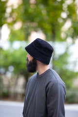 シープスエードで作ったつばダウン型のバケットハット。