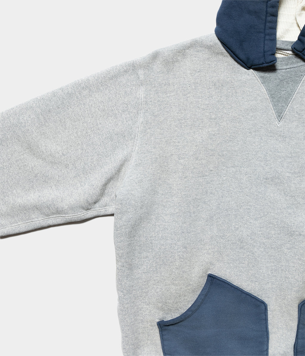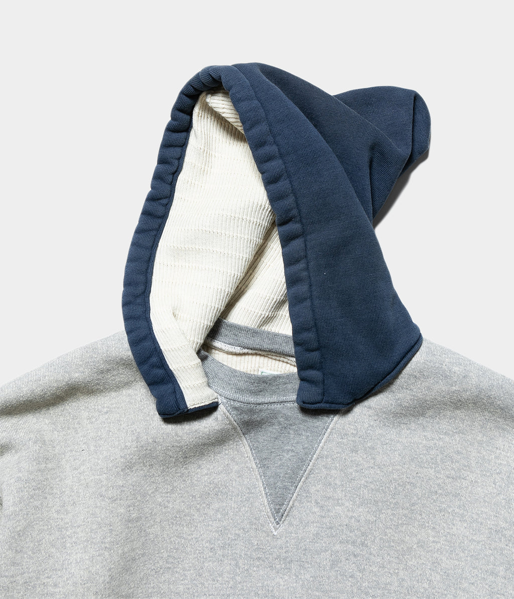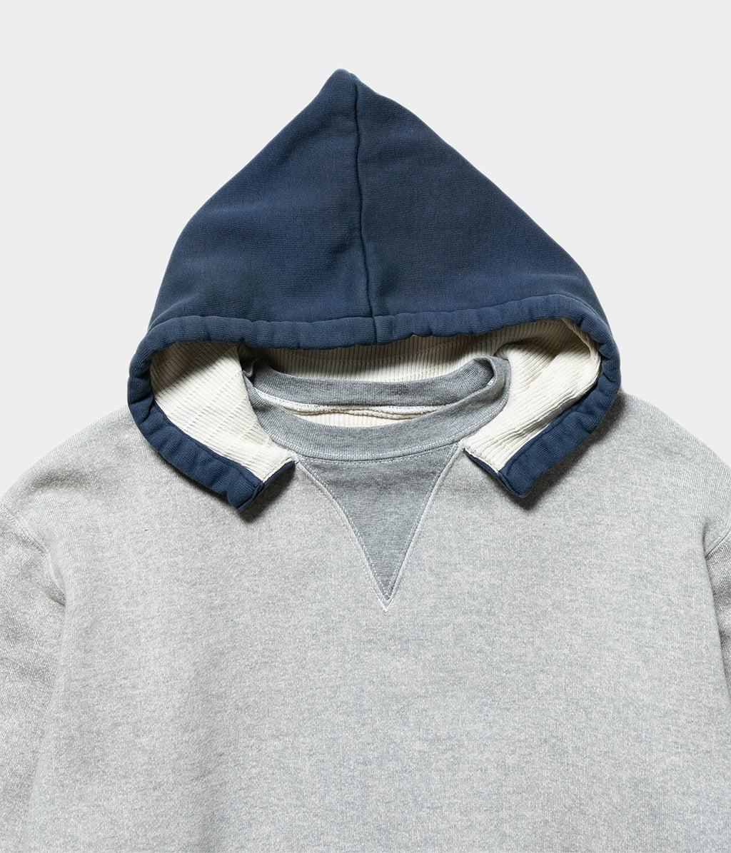 【素材】表地はヴィンテージを解析して作った吊り裏毛、1時間に1メートルというゆっくりとしたスピードでしか編み立てられないが、糸に余計な負荷を掛けないで編み上げることで、肉厚ながら固くならず、ふっくらとした風合いで仕上げた。裏サーマルもヴィンテージを解析し作成。