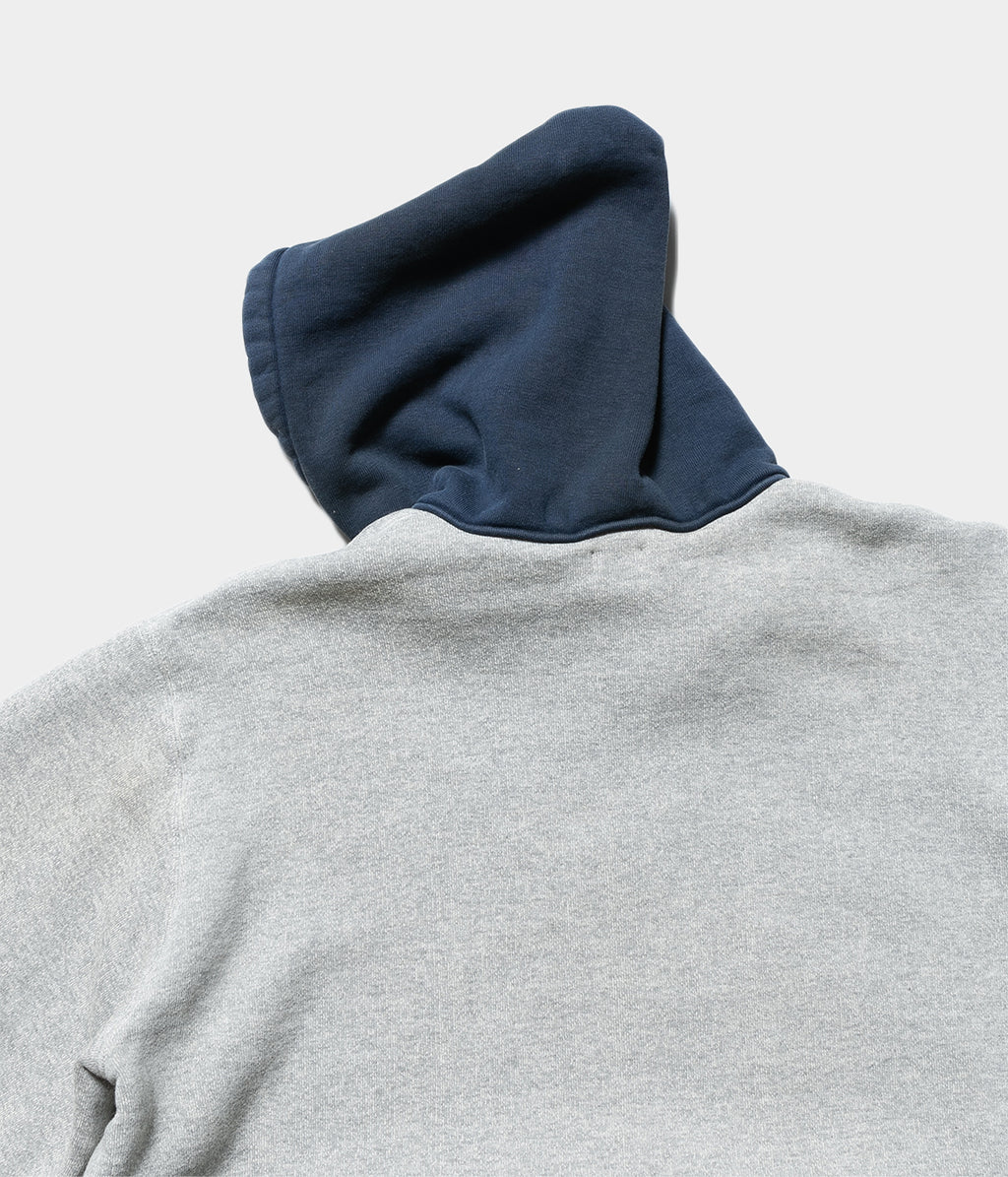 ヴィンテージの薄く伸びきって緩くなったリブや、ポケットやVガゼットの歪み、被れない小さなフードをあえて再現した。後付け箇所の褪色違いなども細かく再現。