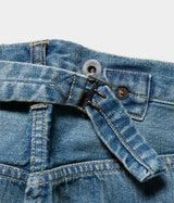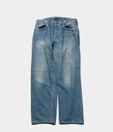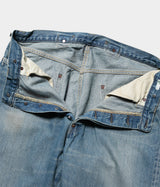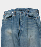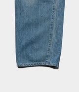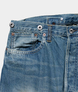【加工】自然な経年変化を、手作業により再現。ヴィンテージを再現した加工感は、耳の色落ちまでこだわり、経年変化での退色したグレーカラーのセルビッチも特徴