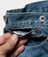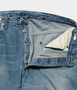 デザイン】シンチバックやサスペンダーボタンが特徴の1922年モデルの 501XX ベースに、バランスを整えた太めのシルエット。股上を僅かに深くして、尻ぐりのくい込みを軽減させることで、バックスタイルを調整した。BIGINCHデニムで稀に見られる、バックポケットが脇側に離れているバランスを活かし、完成されたデザインの中に遊びを入れている。オリジナルのタックボタンを使用。