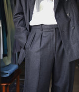 A.PRESSE の定番型モデルのトラウザー。硬すぎず崩れすぎないバランスを突き詰め作成。クラシックなディテールでありながら現代的なシルエットにした。