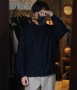 シルケット加工(表面に光沢感を持たせる加工)を施した裏毛素材を使用したクルーネックスウェット。