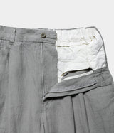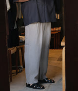洗い加工を施したナチュラルな風合いが特徴のリネン素材を使用した2タックワイドテーパードパンツ。