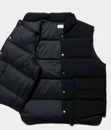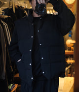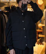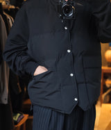 表地に撥水性のあるポリコットンを使用し、中綿には天然素材ダウン90% フェザー10%を使用しています。裏地は滑りのいいポリエステル生地を使用しているのでストレスなく着用できます。