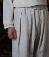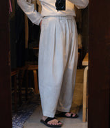 平面的な構造を再解釈し、天然素材が持つ本来の機能性と組み合わせることで、一過性の時代の流れにとらわれることの無い、永く続く服を目指しています。