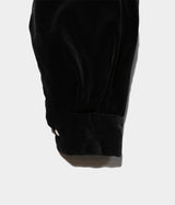 腰ポケットの細玉縁は手で綺麗に作られている。裾の細幅で繊細なゴムシャーリングのディテールも特徴。