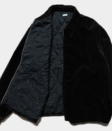 【裏地】シルクナイロンワッシャータフタを使用。仕上げ加工によりシルクがフィブリルし、擦れた表面感が特徴で軽くて袖通しも良い。中綿をだかせてダイヤ柄にキルティング加工を施した。