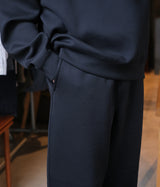 ダンボールニットを使用したウォームアップスウェットパンツ。中空構造のため、温かい空気を含み、そしてしなやかで肌触りも良い素材感が特徴。レイヤードするため、極めてシンプルにデザイン性を極力削いだ。
