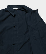 番手の薄手のタイプライター素材を製品染し、カバーオールを作成しました。