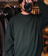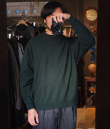 シルクのネップ糸に柔らかさと軽さに特徴があるウール糸を撚糸したオリジナル素材のプルオーバー。あえて冬物としては薄手寄りの10ゲージで製作しています。軽く、柔らかく、着た時にちょっと贅沢な気持ちになれるアイテムに仕上がっています。