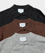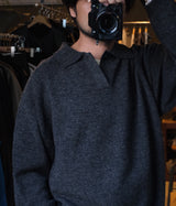 オリジナルカラーで撚糸した糸を使用した7ゲージの長袖ポロニットを作成しました。この糸は3本を撚糸し1本にするのですが、1本を英国羊毛にする事でハリ感をプラスしているのが特徴です。