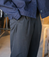 製品染めならではの色合いとタックに合わせた玉縁ポケットが特徴です。