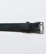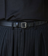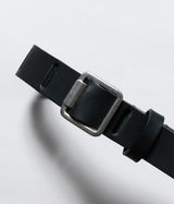 定番のオリジナルバックルを使用したナローレザーベルト。