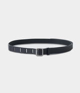 バックルのピンが太く横⻑になったイメージで特徴的なバックルをオリジナルで作成しました。ピンを横⻑にしたことで、ピンを通すための穴も縦⻑になり、シンプルながら他にはないアクセントの効いたベルトになっています。