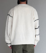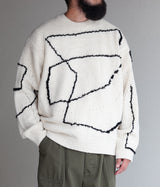 生地には弾力性に富み嵩高性に優れた羊毛を使用。手紡ぎのようなナチュラルな表情を持った糸で、厳寒期でも暖かく着用いただけます。今シーズンのテーマにしたBEN NICHOLSONの作風や作品のカラーパレットからキーワードは、『重ねる」「ライン」「カラーブロッキング」「陰影」などを服に落とし込んでいます。刺繍や窪みなどを変則的に配置し、立体感と動きのある編み地になっています。