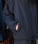23FW継続のDETACHABLE MILITARY BLOUSONです。今期は裏地をメッシュからナイロン素材に変更し、中綿にはプリマロフ トを使用しました。仕様は同じで、ファスナーで袖が脱着可能でベストとしても使用できるブルゾンです。