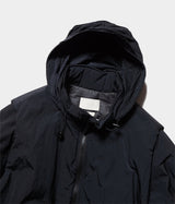 袖はジップで取り外し可能です。襟にはフードが収納されています。