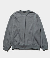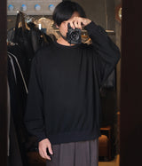 通のスエットですが、中のーク部でり替えが入ってり、袖からークが1きでり替えになってり、フロントはセットインスリーブですが、後ろはドルマンスリーブになっています。 また、肩ハギ、袖ぐり、ークり替え部は、強度と意を持たせるために2針ほ本縫いを入れてしアクセントを入れています。シルエットはしゆったりとしたシルエットです。