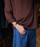 A classic crew neck long sleeve T-shirt. While maintaining a noble and modest image, the slightly shorter length and moderately sleek silhouette make this a standard design that is also useful as an inner layer.