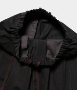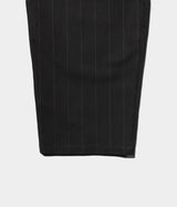 A gabardine material woven with a fine 80/2 wool warp thread and a fine 60/1 linen weft thread. The subtle thick-pitch stripe pattern is the highlight. At first glance, it has an elegance reminiscent of classic suit fabric, but the subtle knotty texture of the fine linen used for the weft thread gives it depth. During the finishing process, the fuzz is removed from both the front and back, resulting in a dry-touch fabric that can be used even in summer. It is an all-season material that can be used for a long time, from the start of spring and summer until the chilly season.