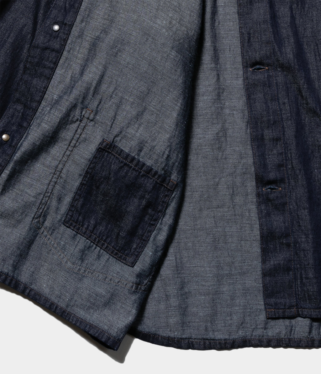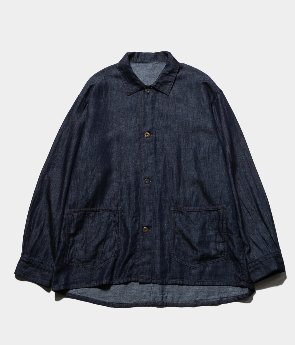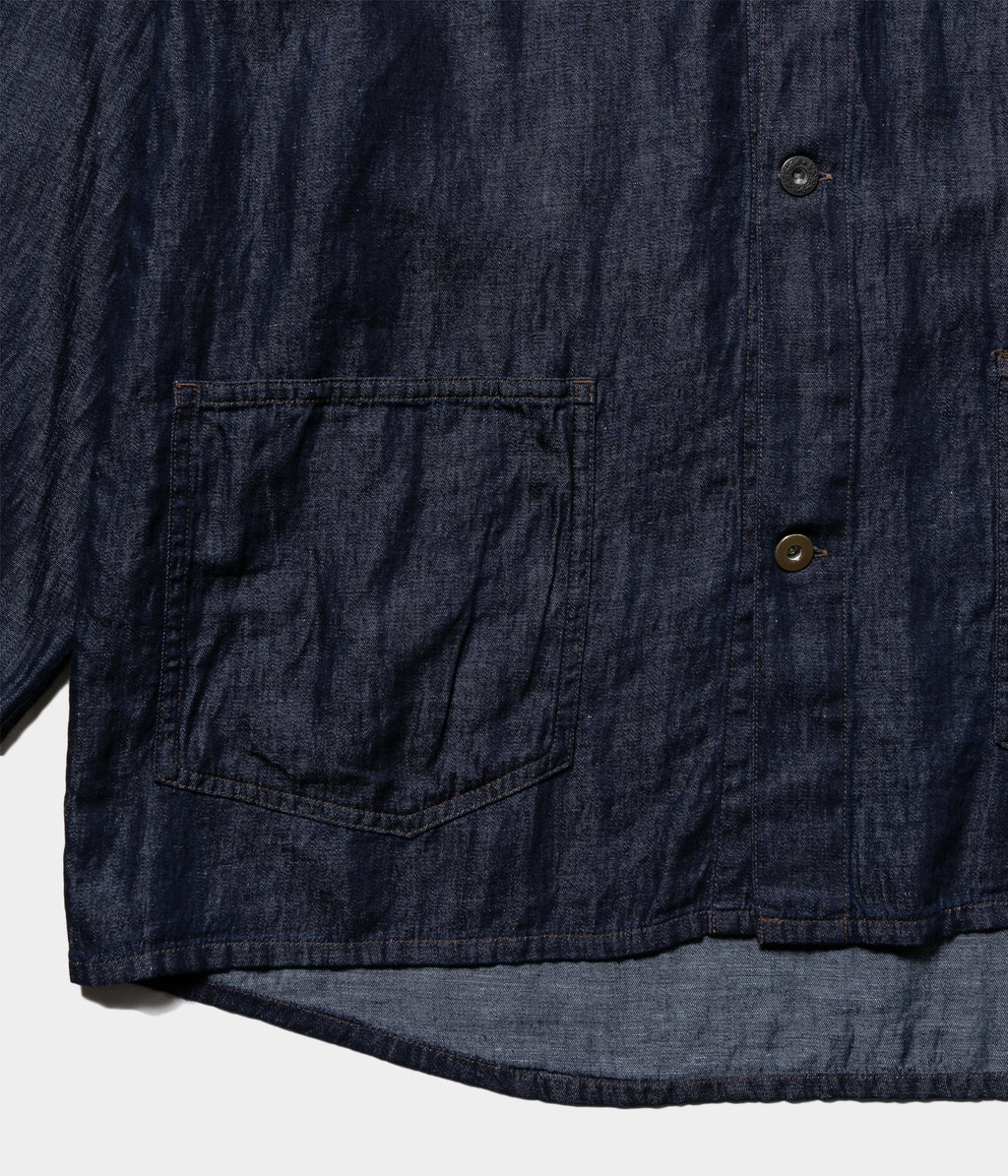 A lightweight cotton, linen and silk denim shirt jacket perfect for spring and summer.