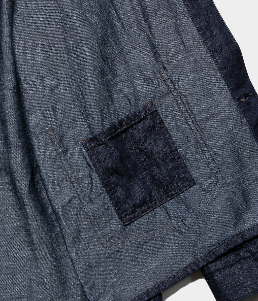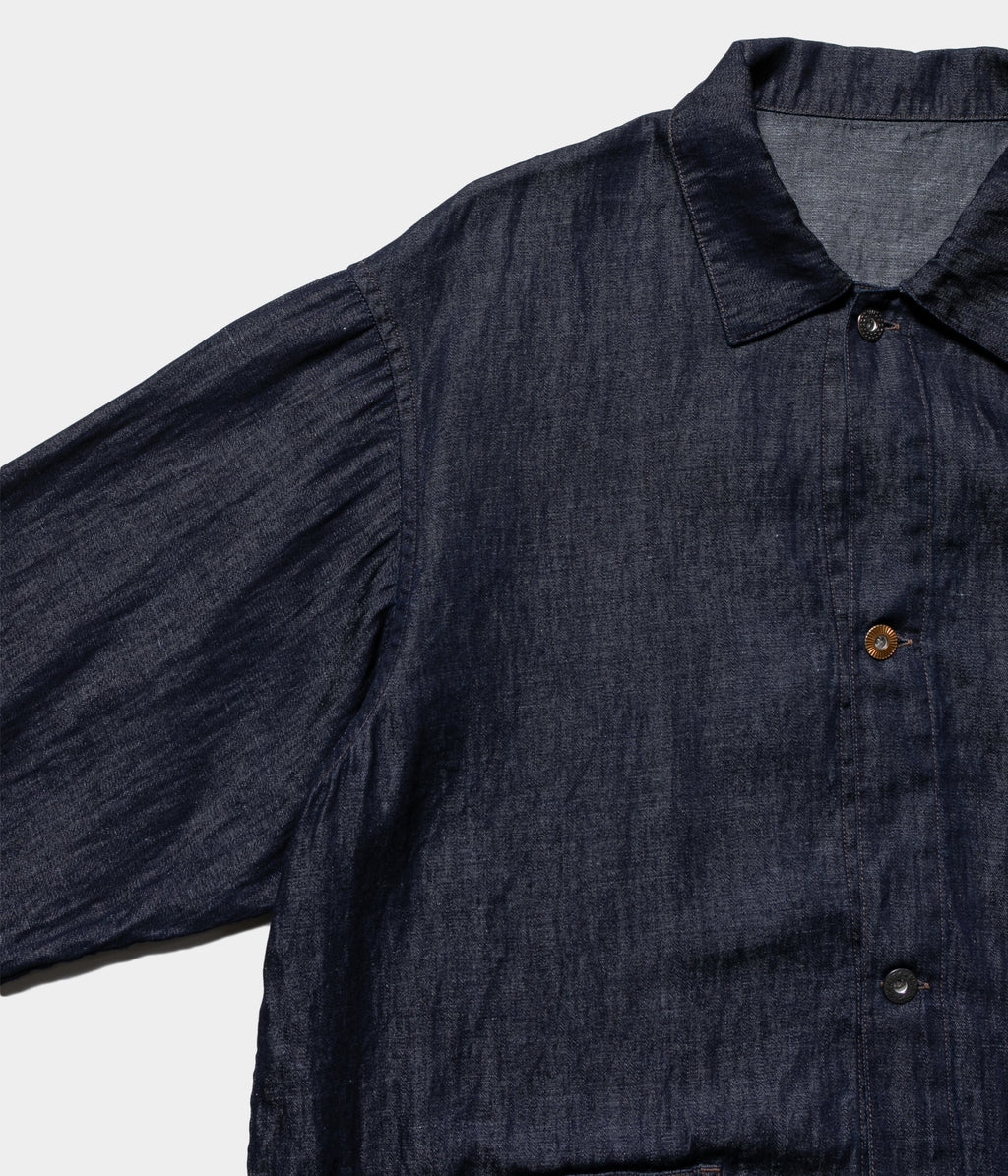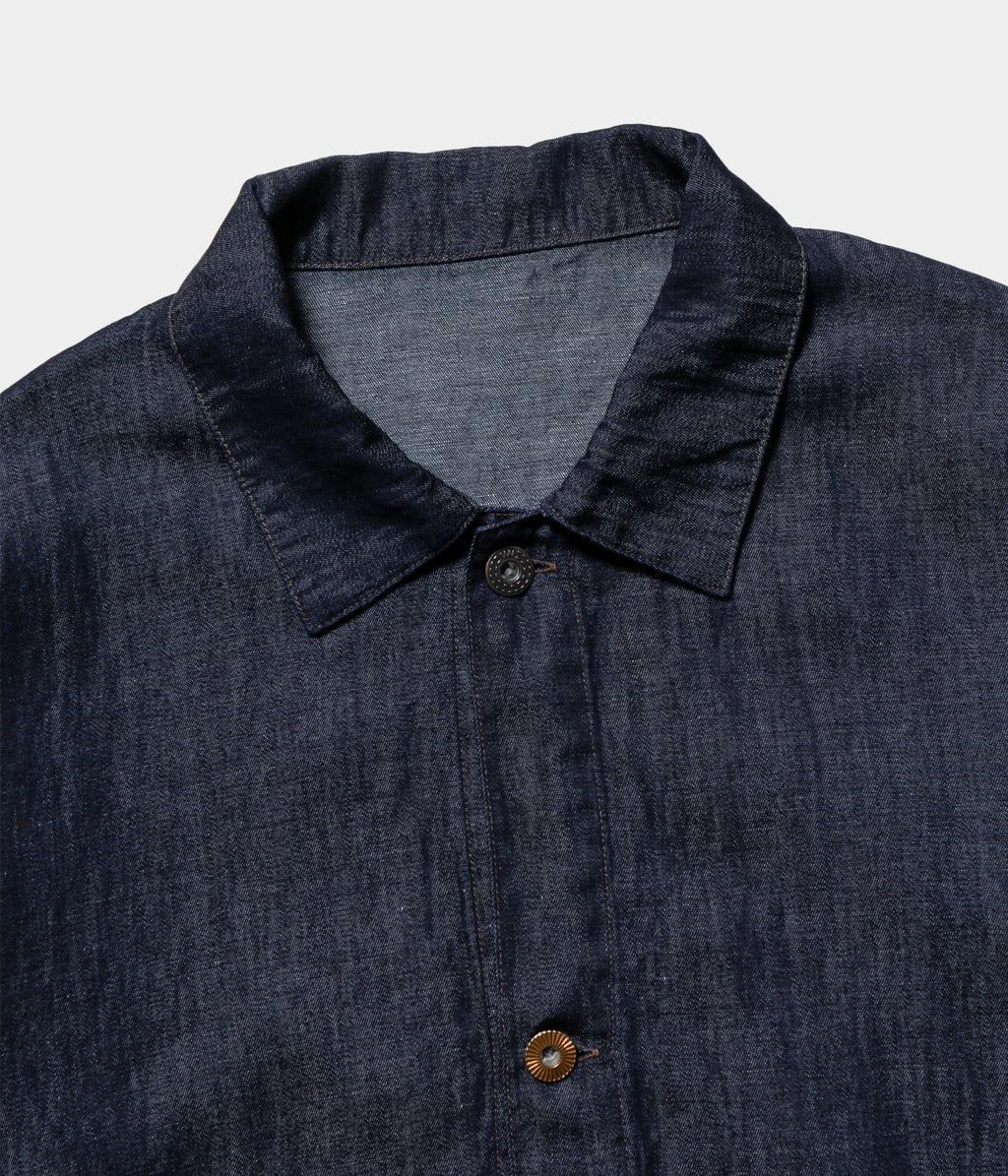 A lightweight cotton, linen and silk denim shirt jacket perfect for spring and summer.