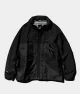 Shell jacket with various pocket works following various details of outdoor brands in the early 2000's. Eight pockets on the front and five on the back. In addition to eight pockets on the front and five on the back, double zipper ventilation on both sides can be opened and closed from the hem to below the elbows. It is equipped with features that make it easy to store and remove, and has a built-in hood that can be stowed away.