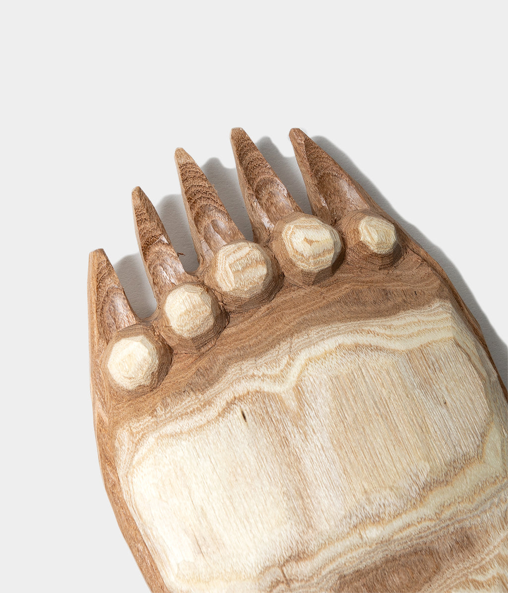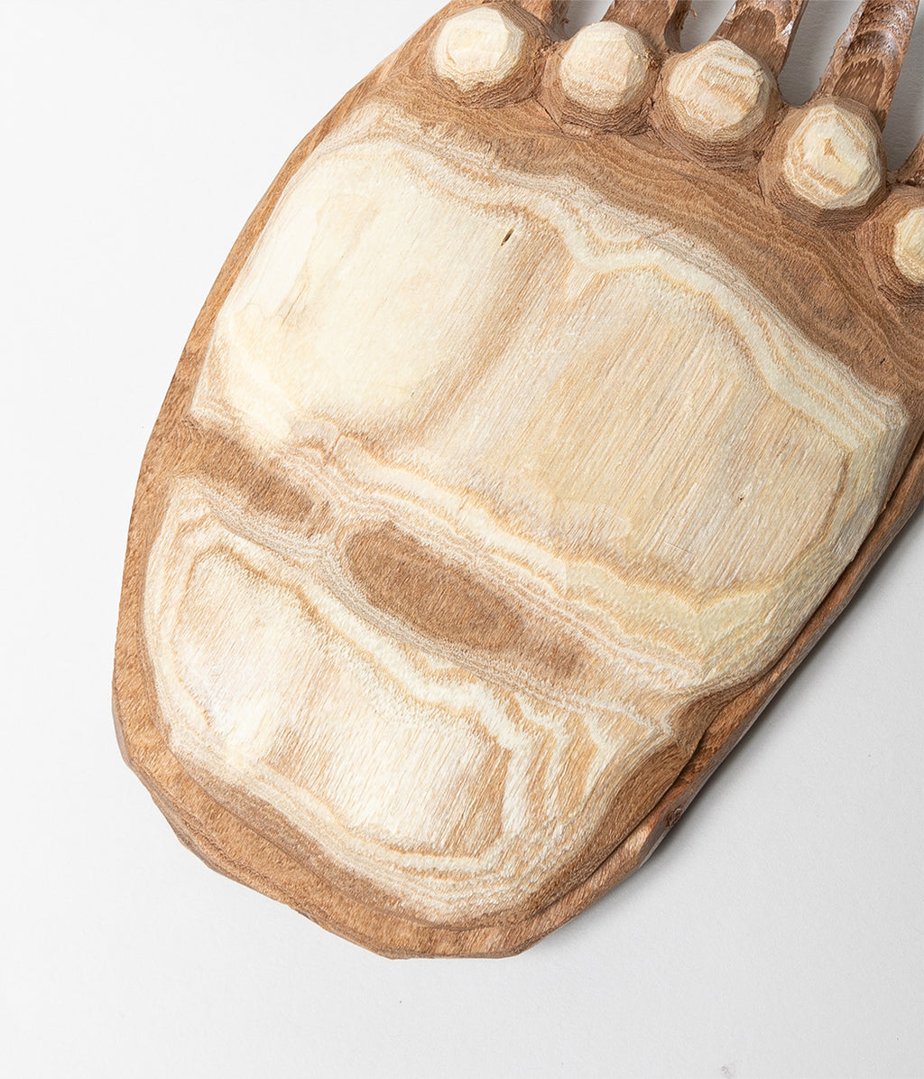 The wooden carved bears are created by calculating the annual rings ( patterns on the cross section of wood ) , and each one has a different expression, making them works that allow you to feel the warmth and dynamism of wood.