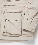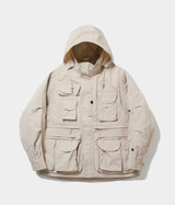 A simple hood is stored inside the standing collar, which also functions in case of light rain. Military detailing on the front sleeves is a design accent, and the cuffs are designed to be adjustable with the addition of action pleats. This design work expands the range of motion when fishing and eliminates the cuffs from becoming loose.