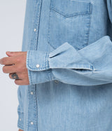 -Regular collar shirt made from light denim.