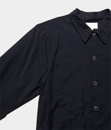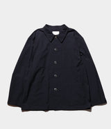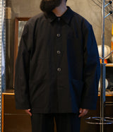 This work jacket incorporates a classic work style into a fashionable material. The work style created with a dressy fabric with a sense of fall is unique and distinctive.