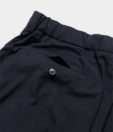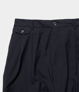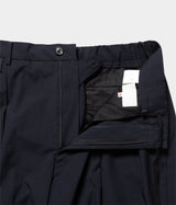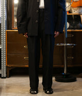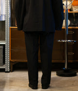 Baggy trousers with elastic waistband at the back and box tucks at the front. By adding a box tuck with a sense of volume to the baggy silhouette, a balloon-like fullness is emphasized.