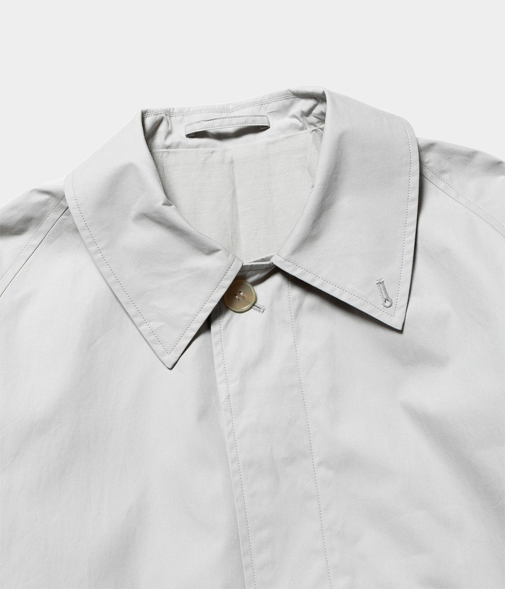 This original material is woven at a weaver in Saitama Prefecture. It is a water-repellent typewriter fabric woven with ultra-fine count extra-long staple cotton at an ultra-high density in both the warp and weft. This is an original material that has been improved with YS 's unique interpretation of a historic Japanese military-spec fabric developed for air force pilots. It features a texture unique to the ultra-high density that cannot be achieved with ordinary typewriter fabric. It is a fabric that changes over time with repeated wear.