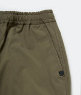 アメリカントラディショナルスタイルの定番であるベーシックなプレーンフロント型トラウザーズをスポーティーに仕上げた。素材の特徴に加え、ウエスト、裾にドローコードを配し動きやすい仕様。