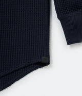 ワッフル素材を使用したサーマルTです。クラシックな特徴を活かした裾のラウンドカットはフリミシンにて処理を施しております。レイヤリング、梅春の防寒着として活躍する一枚です。
