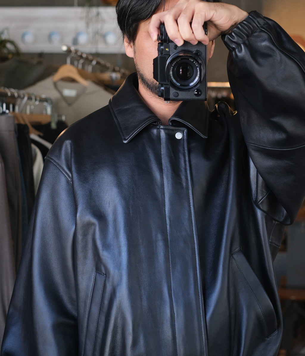 柔らかくしなやかなシープレザーを使用したショート丈ジップジャケット。