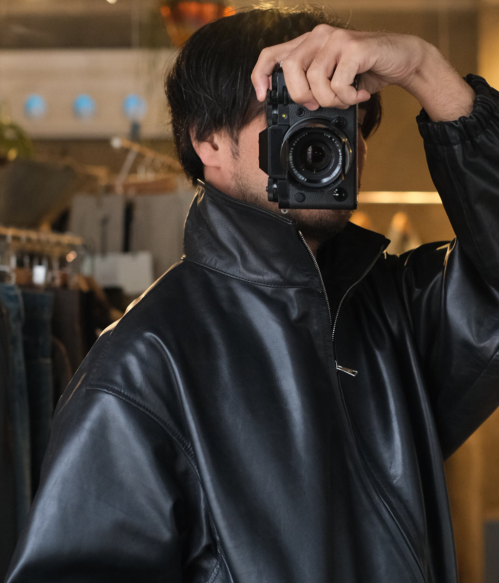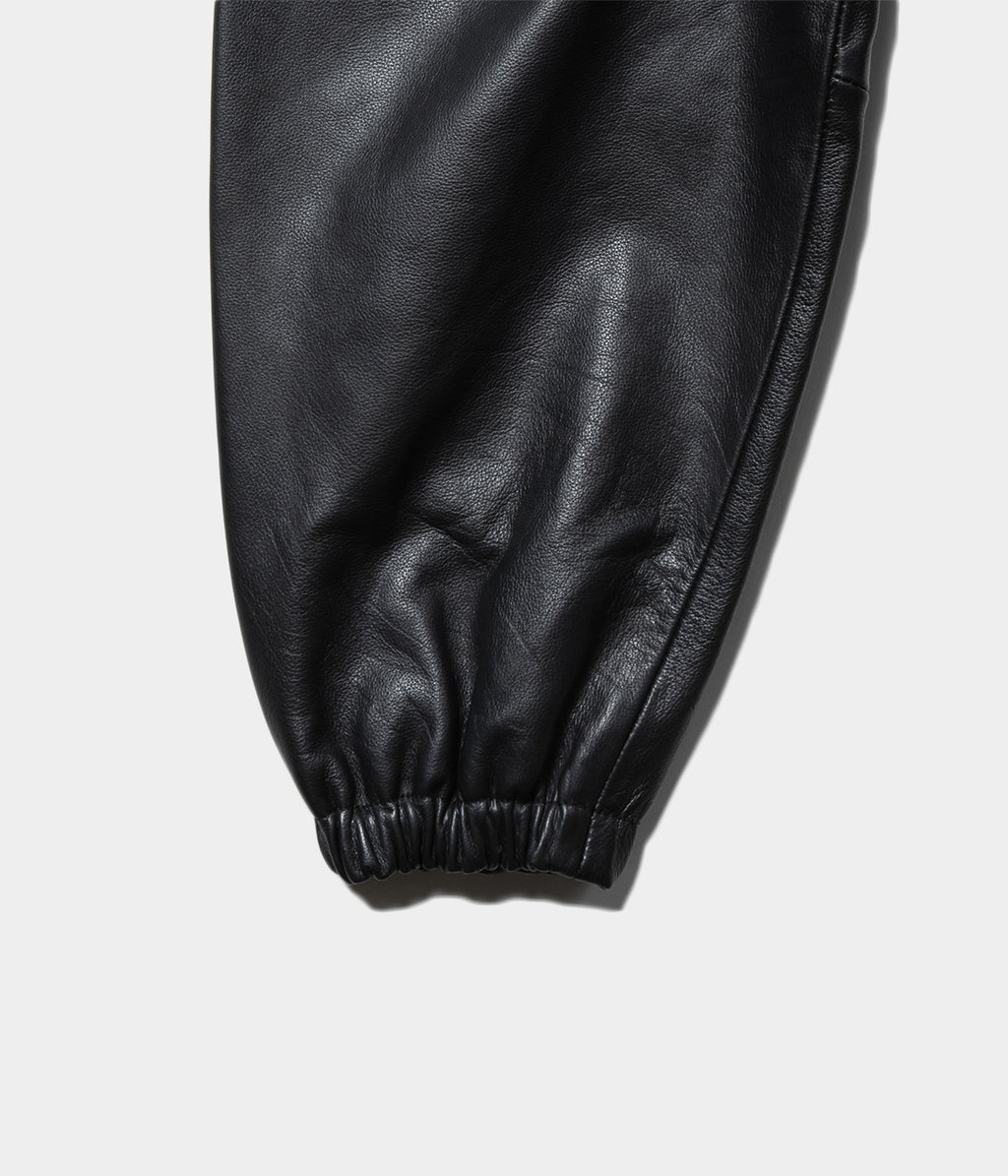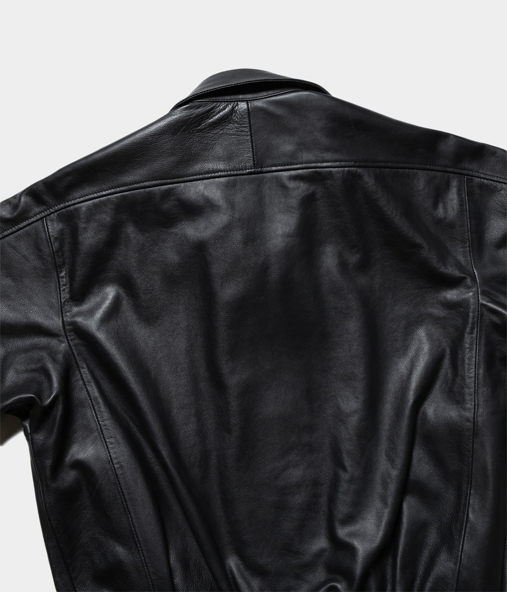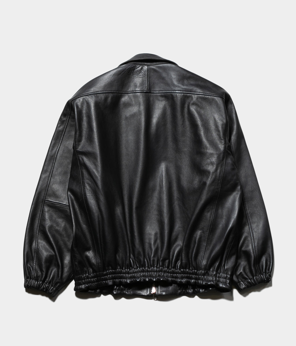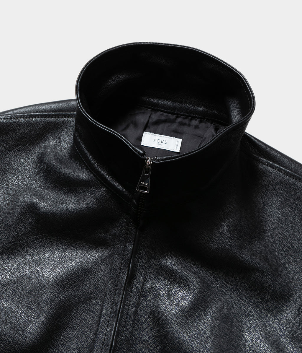 で展開していたシープナッパランレザーの素材替えです。裾と袖口はゴム入り、フロントにはイタリアの高級なRaccagniのダブルジップを採用。裏地はコットンキュプラを使用した総裏仕立てです。